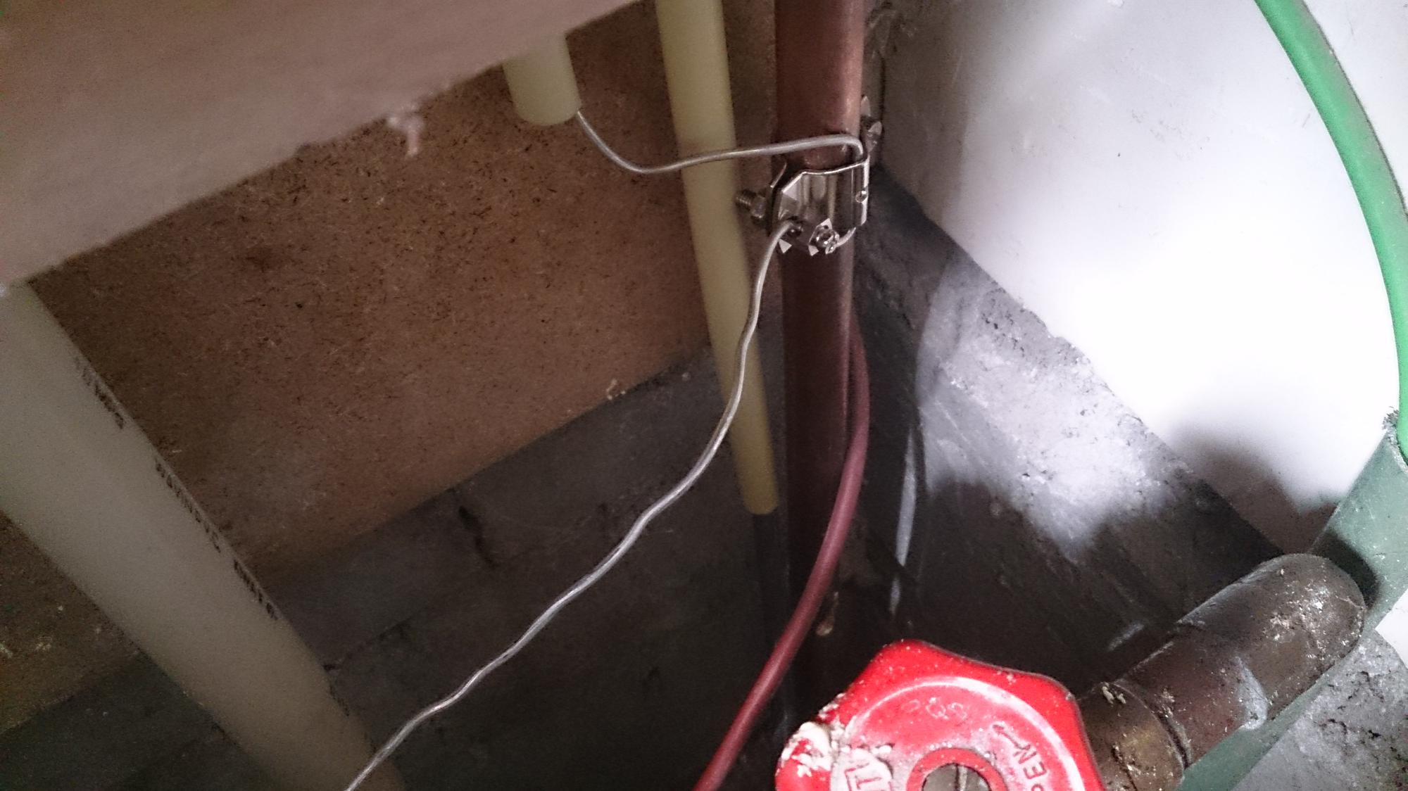 Klustip aarding in de moderne badkamer. Klustip aarding in de moderne badkamer.. Nu zijn de oude leidingen nog van koper en ze vertrekken allemaal in de garage.